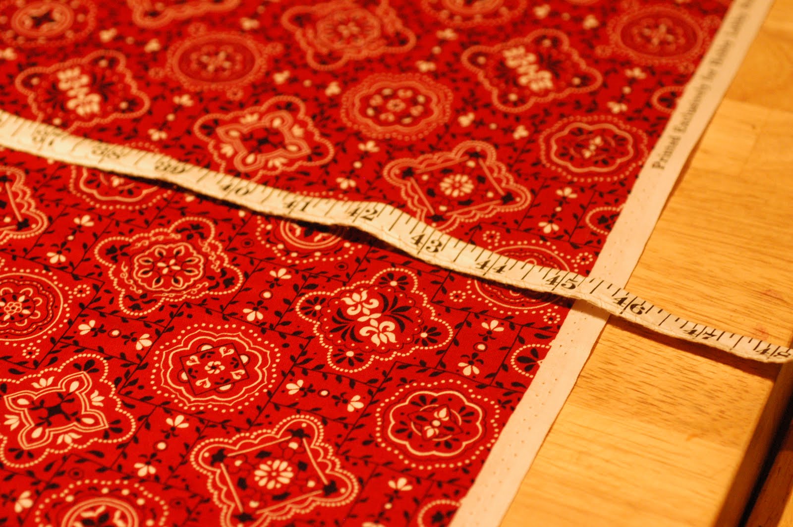 Trim the fabric between 45" and 46"...
